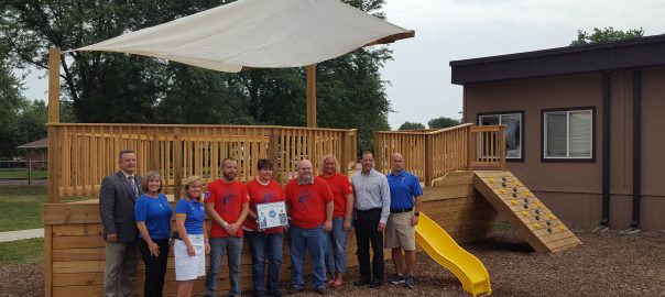 The volunteers also built a wooden ship on the playground for children to use. Kurt said that this meant a lot to the school. He gave the employees present during the meeting a plaque to show the school district’s appreciation.