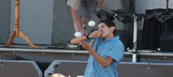 At one point he was tossing a shoe, an iPhone and a baton into the air and he didn’t drop anything.